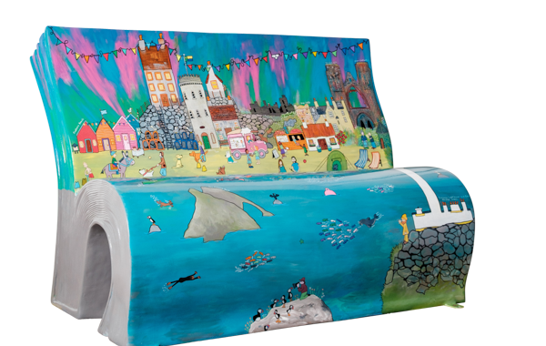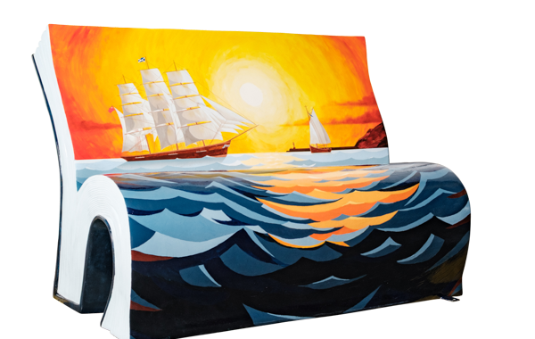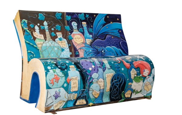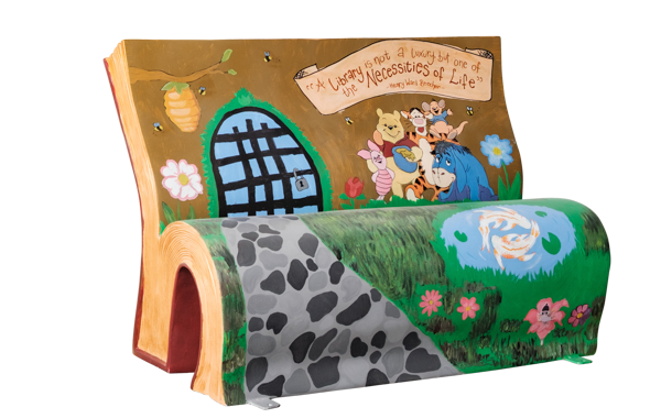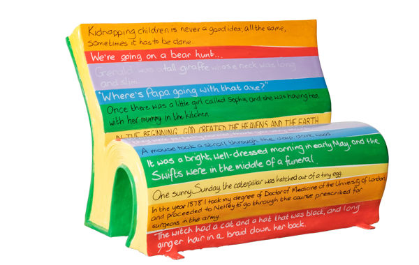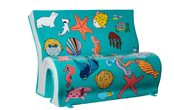 Take a virtual 360° tour of our BookBench sculptures. Once the tour loads, use the navigation panel on the left to explore each sculpture.