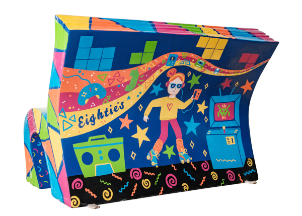 Back to the 80s takes inspiration from the 1980s. Clan Cancer Support was founded in 1983 and since then has provided care and support to many families. Hannah’s design features the vibrant colours and bold graphics which defined the era. The artwork includes video tapes, dial a phones, music records and guitars. On the cover a lady on roller-skates is having fun listening to her Walkman. Celebrate over 40 years of Clan’s support with this fun and playful design.