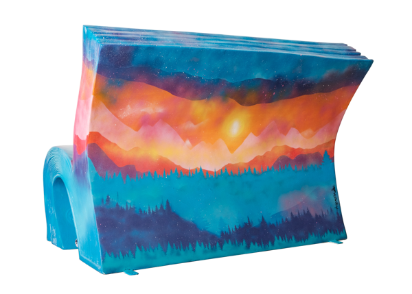 Dreamscape is a captivating sculpture that seamlessly blends the tangible and the imaginative. Resembling an open book, it invites you to sit and immerse yourself in its vibrant world. Painted with a dynamic sunset and bold splashes of colour, it evokes a sense of wonder and endless possibilities. Inspired by the stories, the world, and the power of imagination.