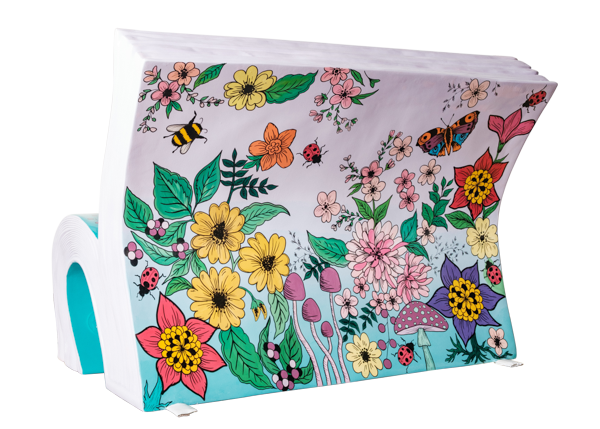 Ladybird Lounger is designed to encourage visitors to sit and admire the local wild flowers and insects around them. It has 10 ladybirds hidden in the design for children to try to find.