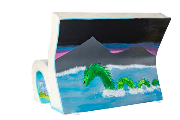 The Rotakids pupil voice group led the BookBench creation from design through to painting. During World Book Day 2025 all 400 pupils in the school were invited to draw their designs for our book bench, the theme shared was Scottish myths and legends. We were delighted with the level of imagination in their drawings and all the paintings on the book bench come from the pupils’ initial ideas. The Northern Lights, Nessie, tartan and the Kelpies all feature showcasing the best of Bonnie Scotland on our Wee Bonnie BookBench!