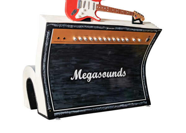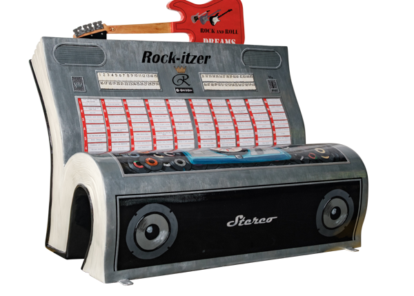 Inspired by the Jim Steinman song Rock and Roll Dreams Come Through, which depicts how rock music is always there to lift you up and help you through troubled times, Ian decided to create the design in two halves. The front features a jukebox with playlists of those boppin’ tunes that get the feet tapping. From the rear, you can see an amp with a guitar, the mainstay of rock music that produces those riffs which are the hallmark of any Rock and Roll song.