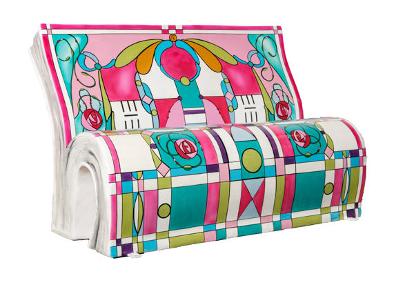 One of Michael’s favorite styles of art has always been the Nouveau movement, and one of its most original and recognizable contributors was the Scottish-born artist Charles Rennie Mackintosh. His clean-lined designs made him one of the most influential artists of his time. Sitting with Mackintosh celebrates this remarkable artist, bringing together elements of his iconic designs in a unique version of a BookBench—inviting people to sit, reflect, and contemplate.